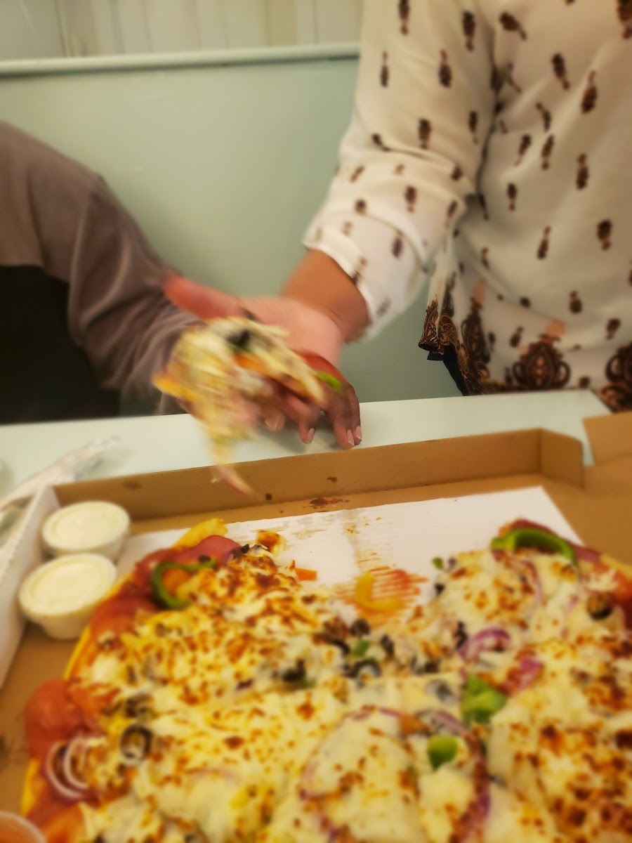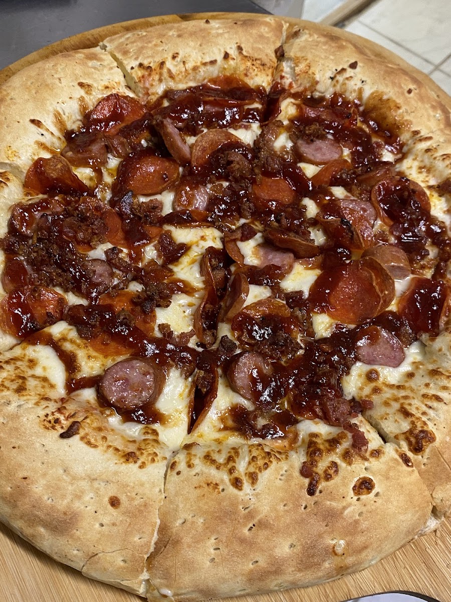 We got three pizzas that were all awesome--double pepperoni, the Smokehouse (oh. My. Word!), and All Meat. I can't leave a review that speaks highly enough of this pizza. And the lady was very friendly.