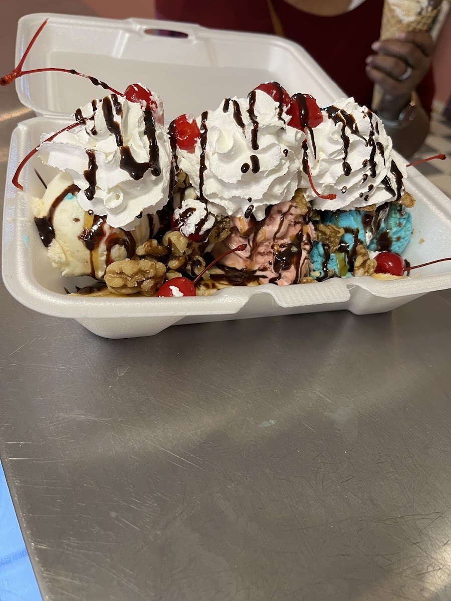 Really wish they had inside tables, but it was fantastic. The girl who waited on us was as nice as could be. Super nice place! The girls were happy with their ice cream nachos.
